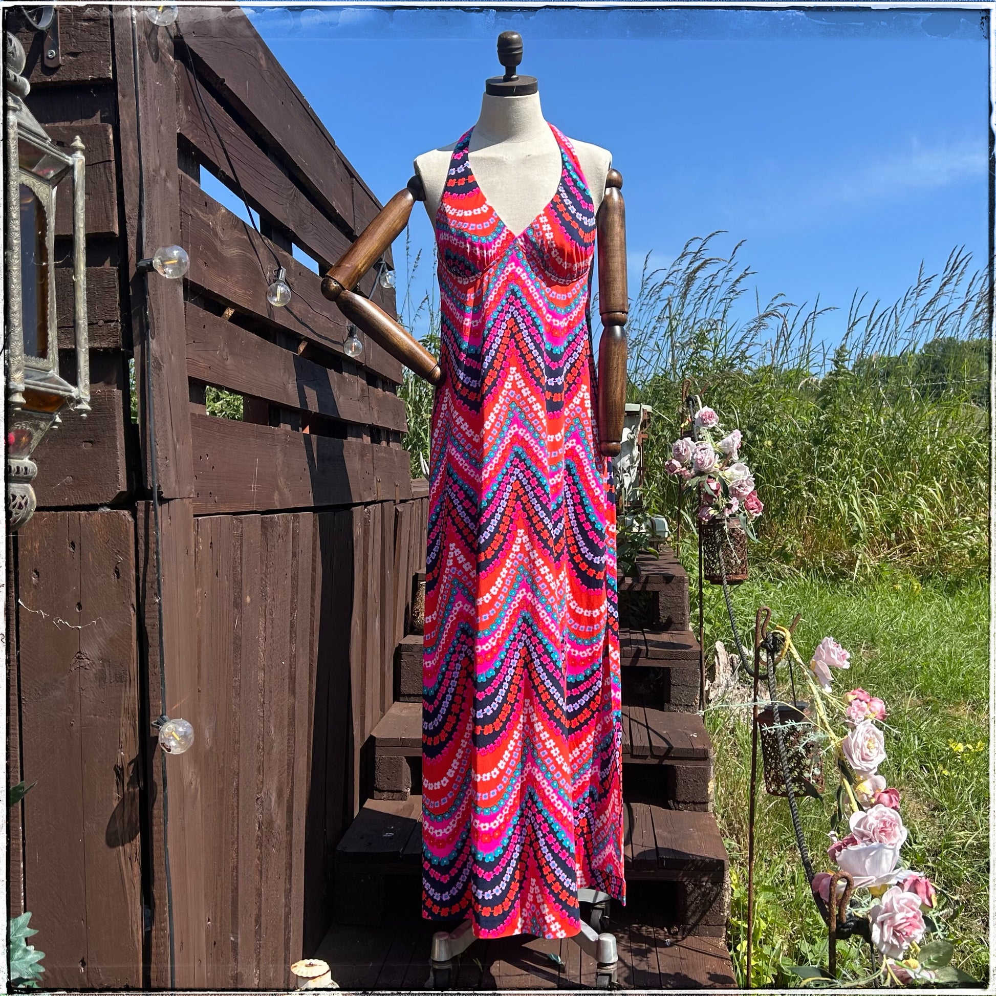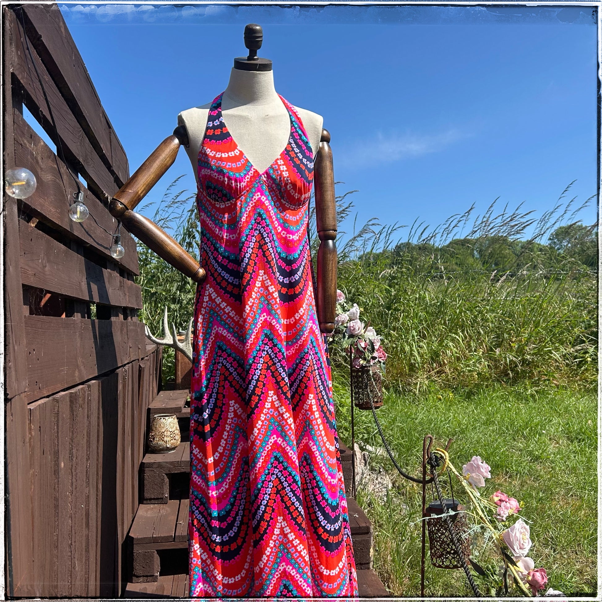70s Elizabeth Stuart Halter Neck Maxi Dress