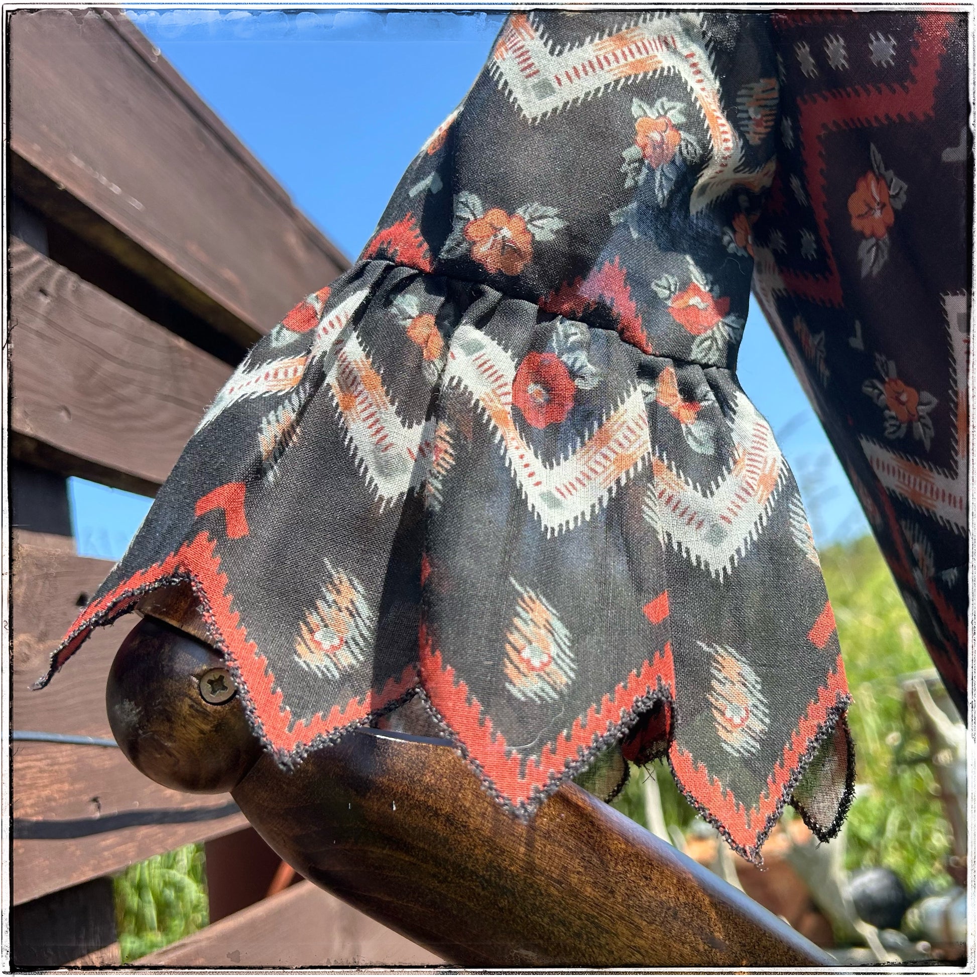 Stunning vintage 70s geometric print with stunning trumpet sleeves.