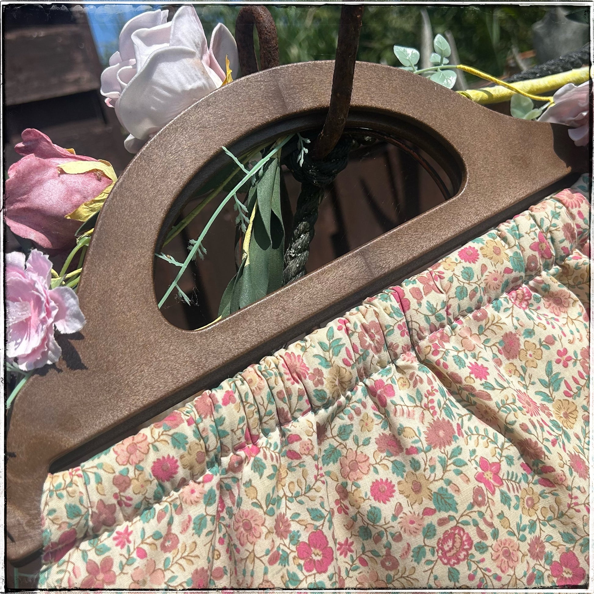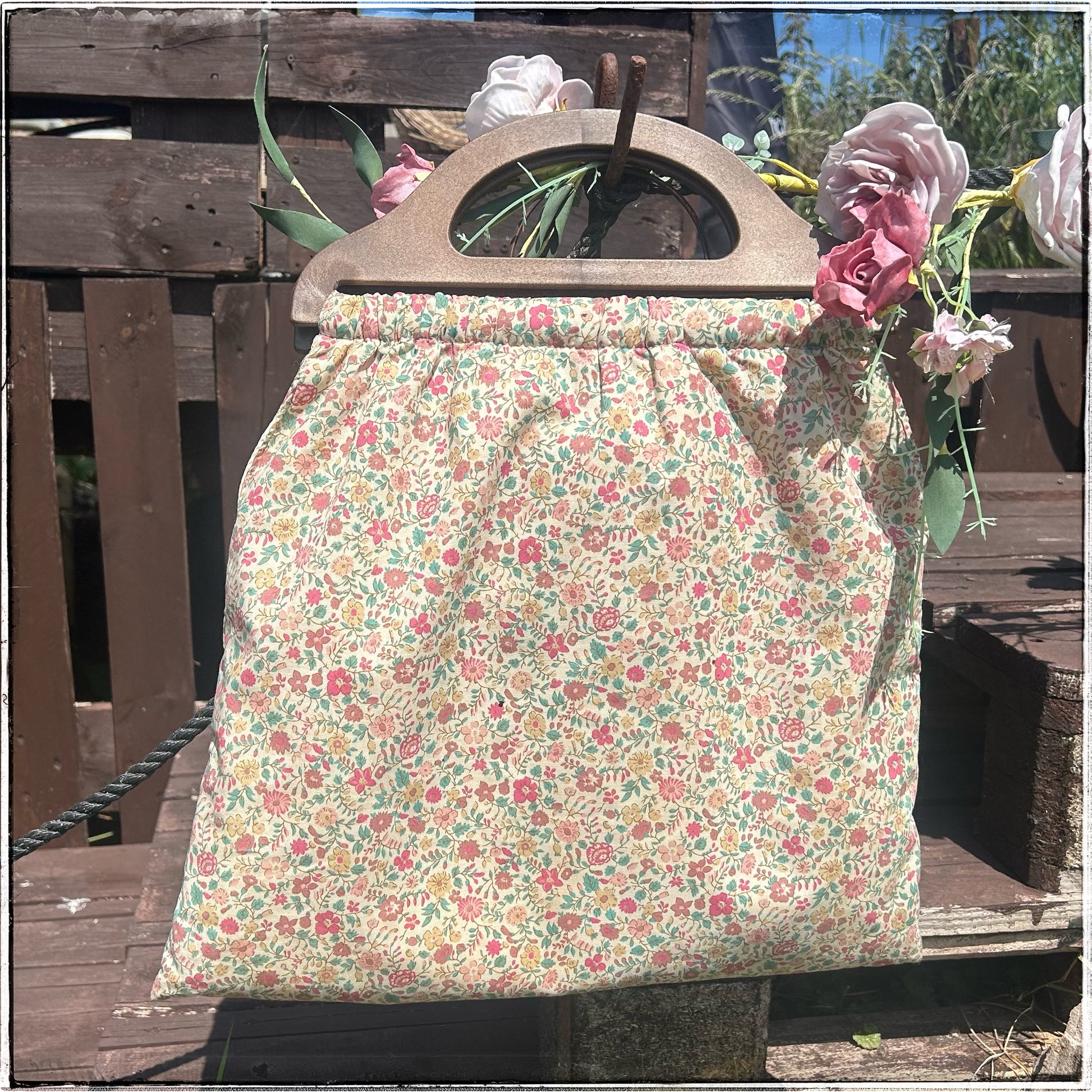 Gorgeous vintage 70s floral lined handmade knitting bag.