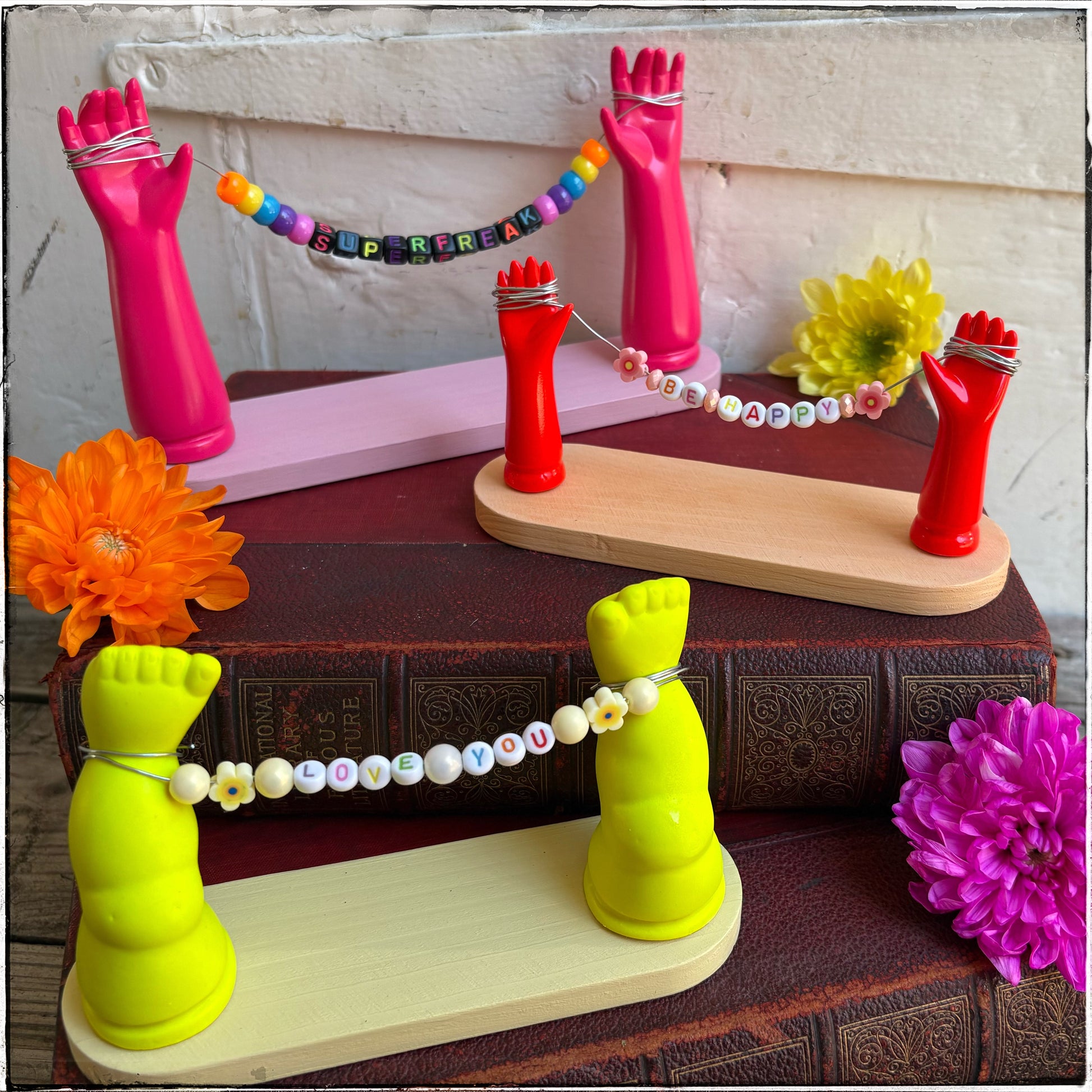 Medium Recycled Porcelain Doll Arm Sign Holder - Be Happy