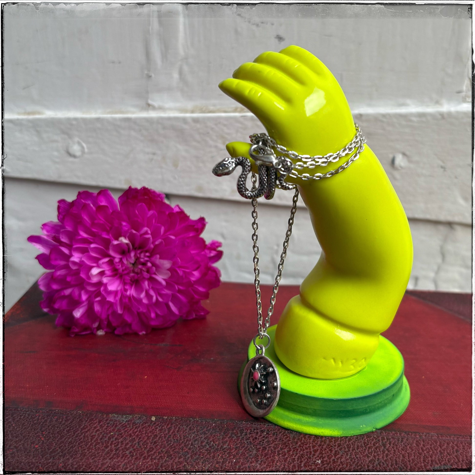 Recycled Porcelain Doll Arm Jewellery Holder - Neon Yellow