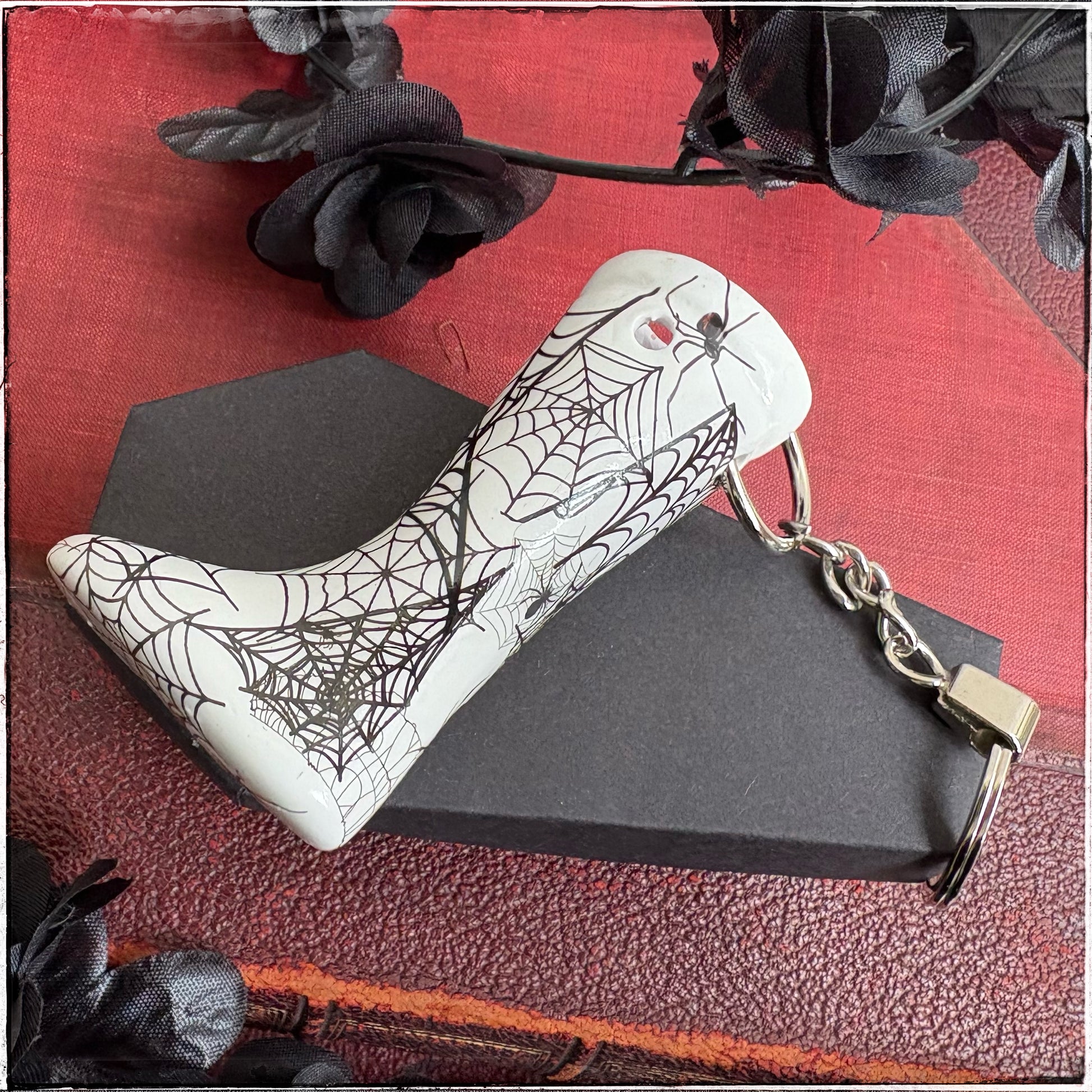Recycled Porcelain Doll Arm Keying - White Spiderwebs