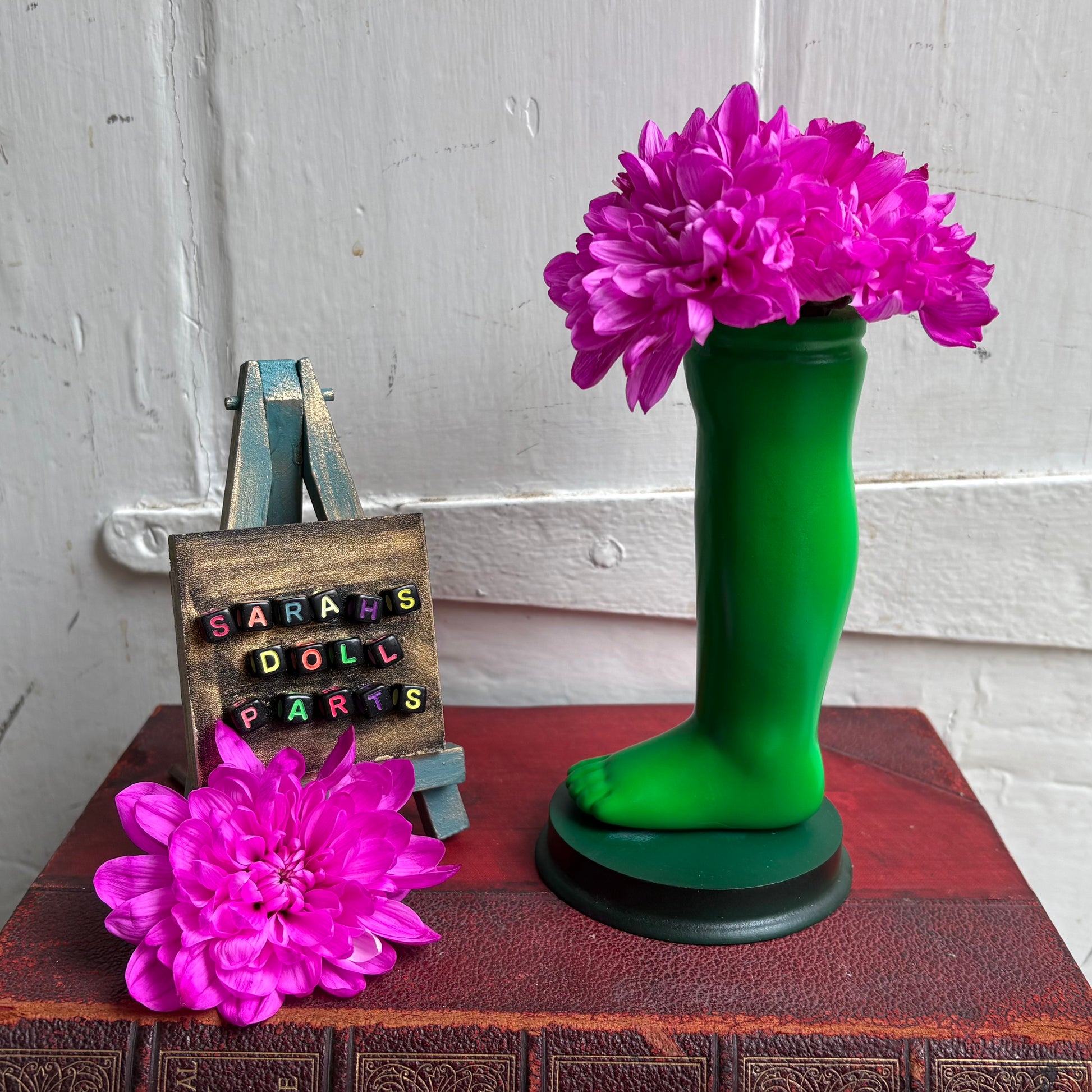Recycled Porcelain Doll Leg Vase - Neon Green