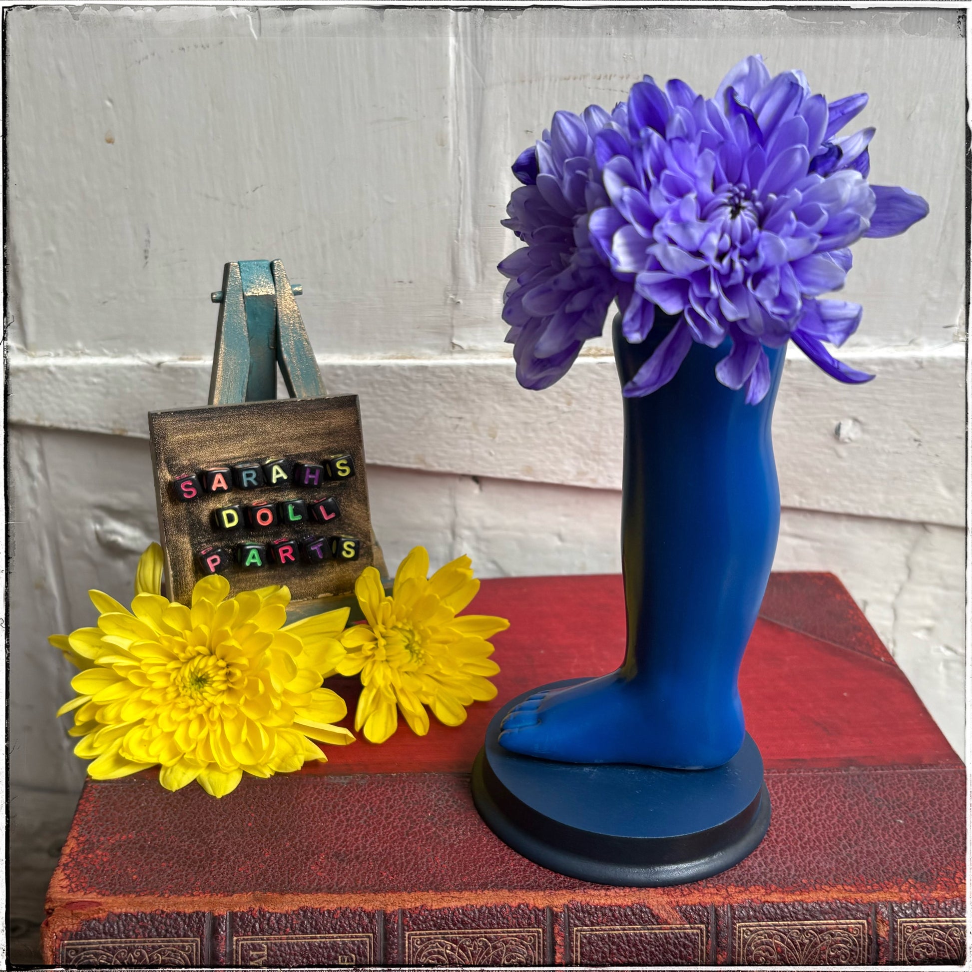 Recycled Porcelain Doll Leg Vase - Neon Blue