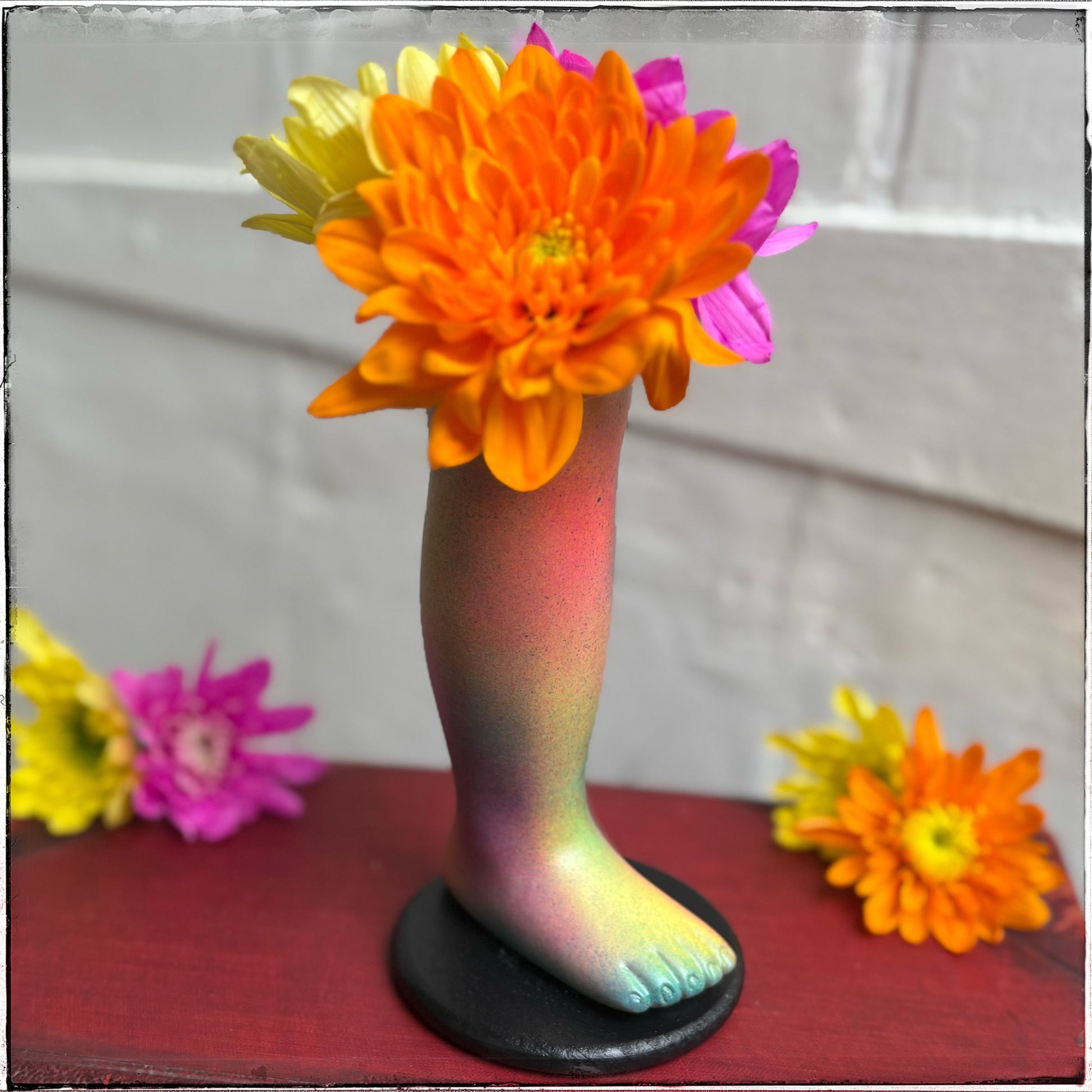 Recycled Porcelain Doll Leg Vase - Rainbow
