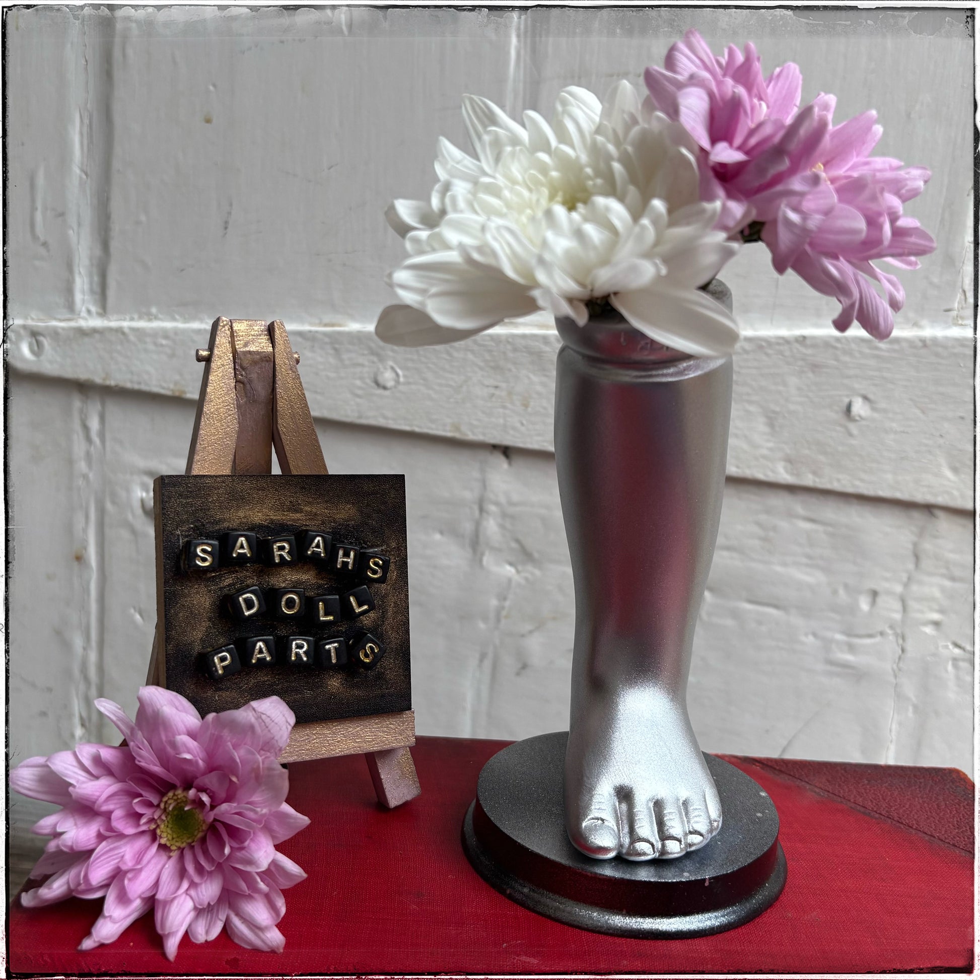 Recycled Porcelain Doll Leg Vase - Silver