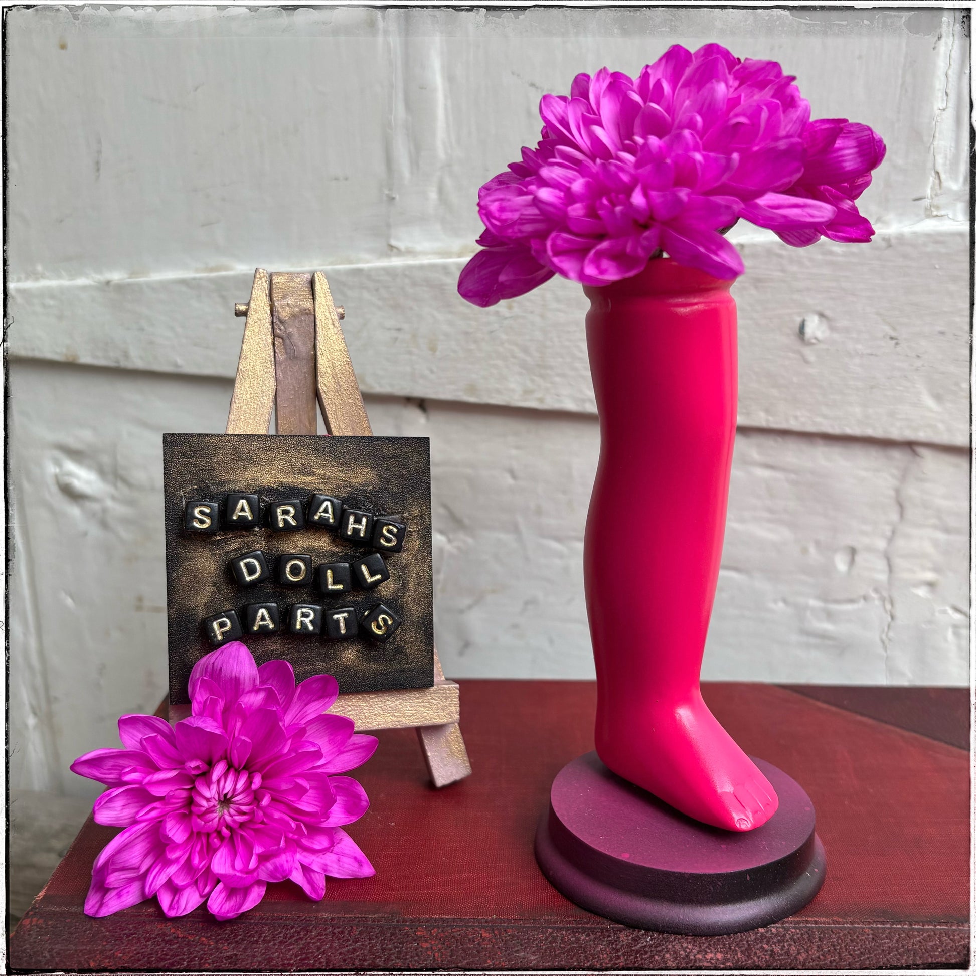 Recycled Porcelain Doll Leg Vase - Neon Pink