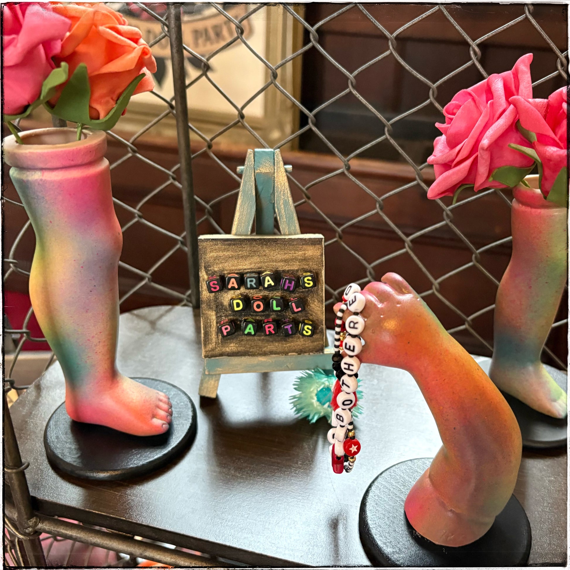 Each vase is handmade using repurposed parts from vintage dolls and as expected will have minor flaws or imperfections to the surface which makes each one totally unique.