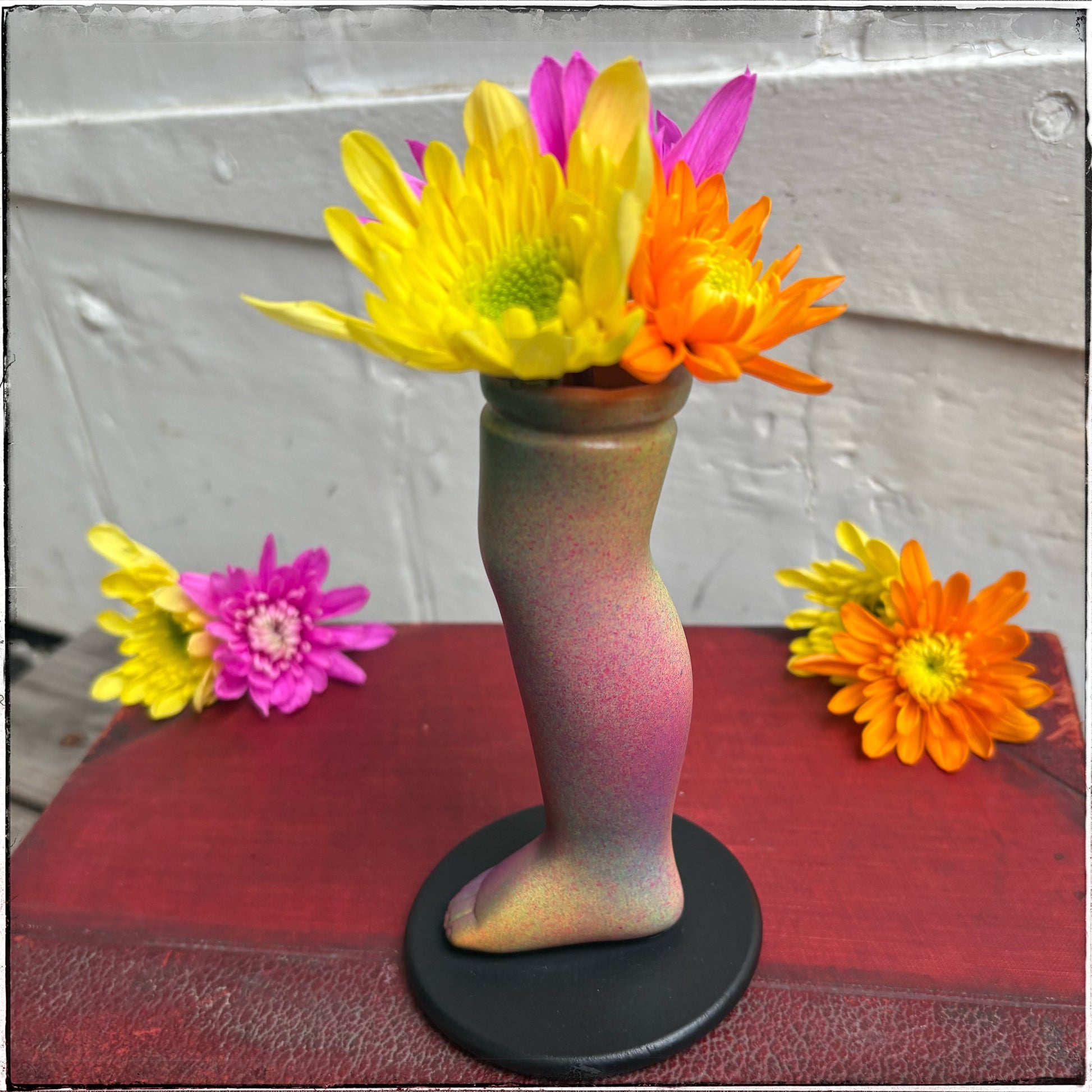Recycled Porcelain Doll Leg Vase - Rainbow