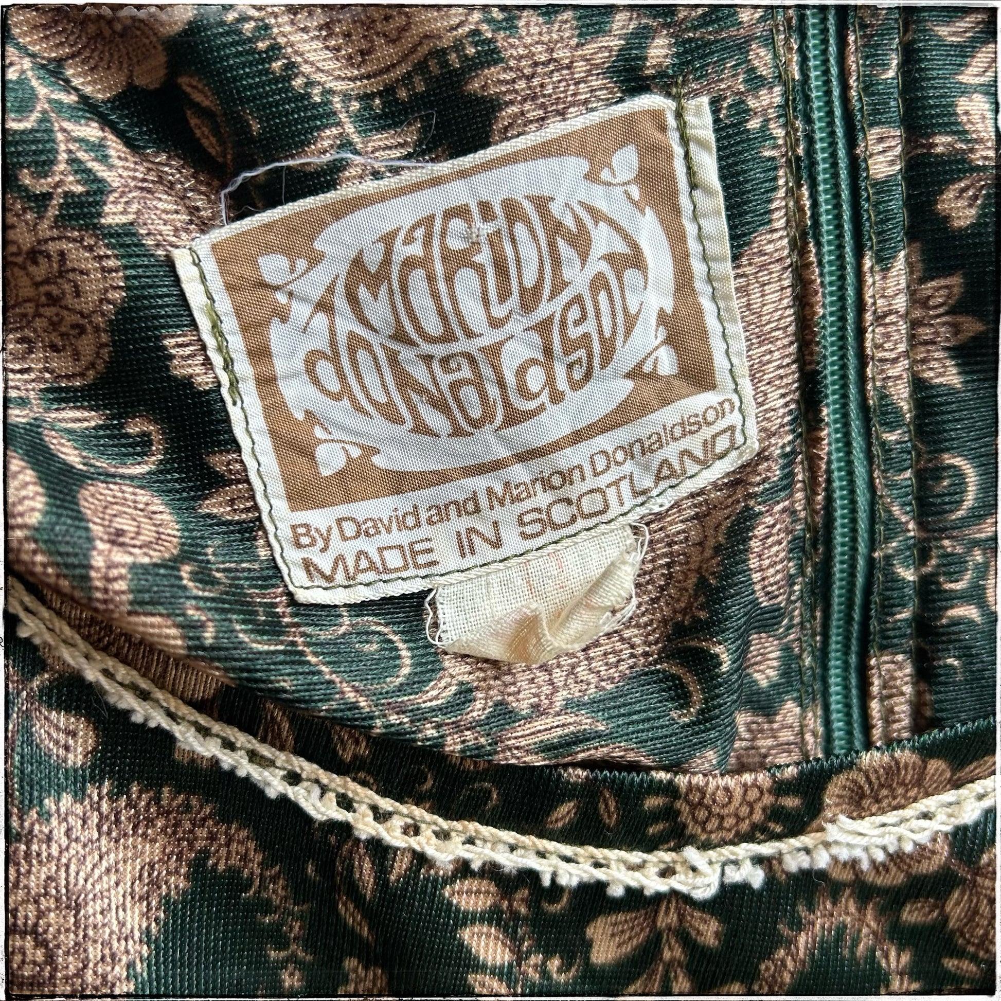 Absolutely stunning 1960s vintage Marion Donaldson paisley print dark forest green mini dress.