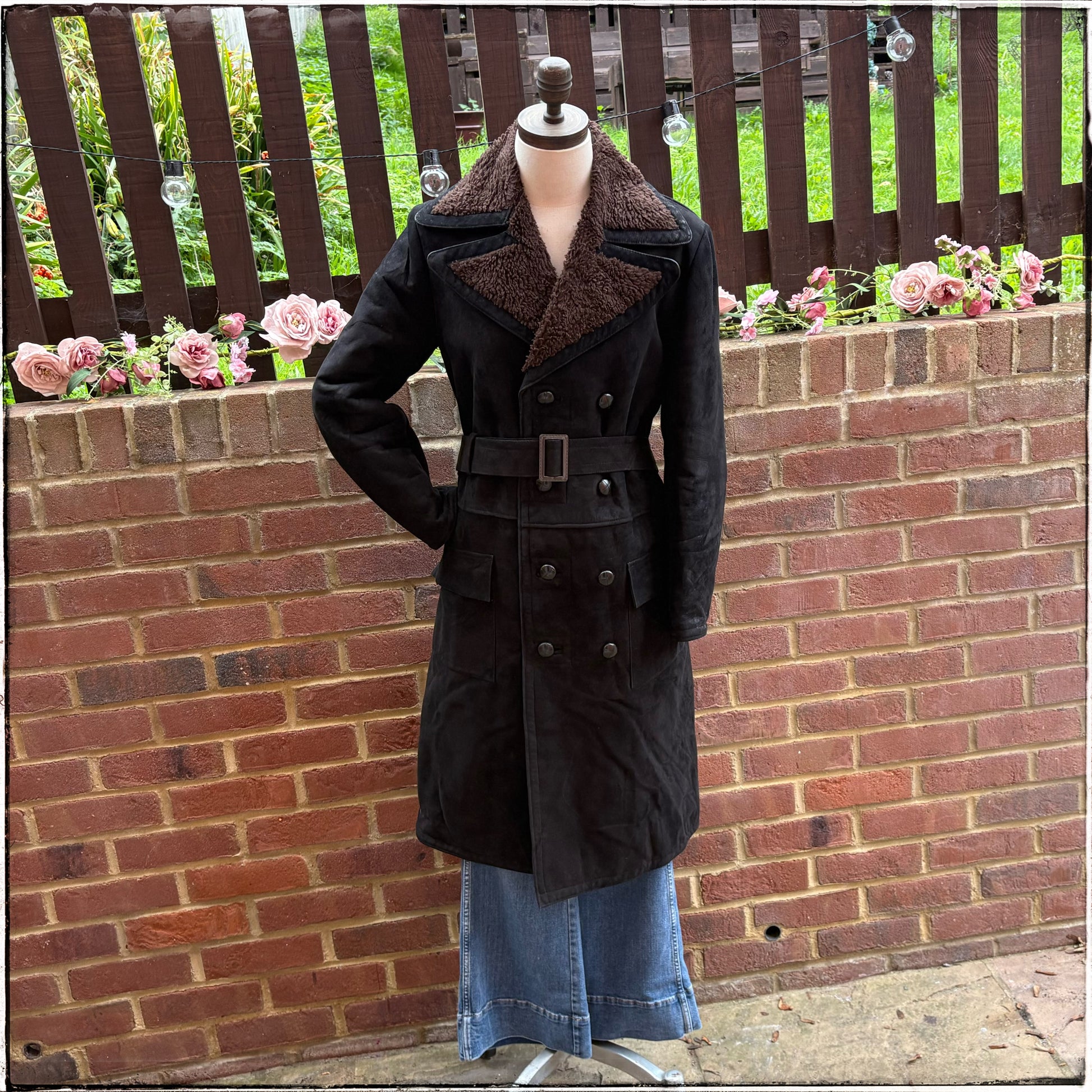#sheepskin #beltedcoat #blacksheepskincoat #vintagecoat #wolfintheatticvintage